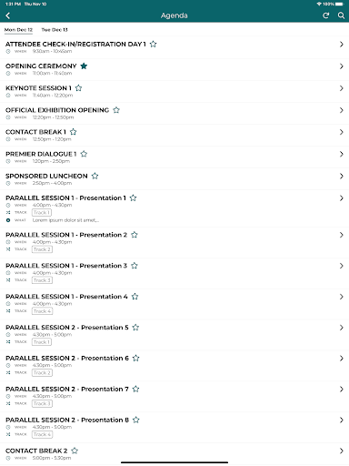 Agenda allows Attendees to view full happening Agenda, while My Agenda allows Attendees to view selected agenda and add them in My Agenda according to preferred interest for simple reference